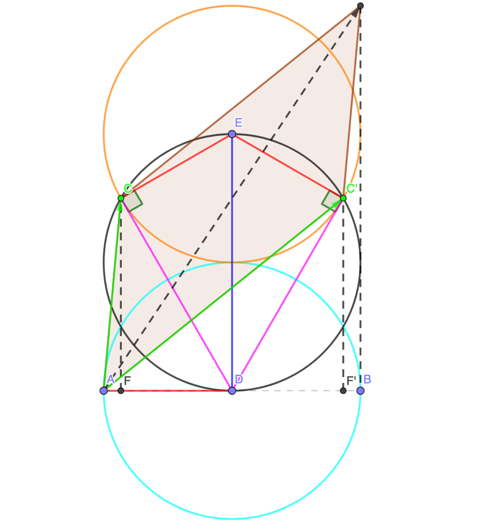 trisección de un ángulo (ver figura) a la solución de la ecuación cúbica x3+qr2=3r2x, donde q es la cuerda NP que determina el ángulo NOP a trisecar, r radio del círculo donde se inscribe el ángulo a trisecar y x (NQ o NV) la cuerda que subtiende la tercera parte del ángulo dado. Cuando q<2r, el problema tiene dos soluciones reales y, por ende, tres raíces reales. Ésta tercera raíz negativo de la suma de las otras dos, raíz positiva de la ecuación x3=Ax+B, aplicando las fórmulas Cardano para la misma, resulta que la condición para que esta ecuación tenga soluciones reales es, q>2r, haciendo A=3r2, B=qr2. ¿Dónde yace el absurdo? Equivalentemente, para que en la fórmula de Cardano que expresa la solución real de la ecuación cúbica aparezcan números complejos es, q<2r, así pues la raíz real se expresa, según las fórmulas de Cardano, como la suma de dos números complejos conjugados. ¿Existe un problema de naturaleza geométrica asociado a esta tercera raíz como el caso de las otras dos raíces asociadas a la trisección de ángulos conjugados?