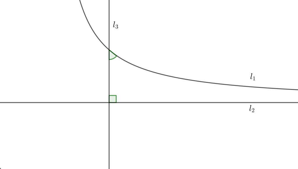 En suma, la distinción fundamental que subyace al quinto postulado, a saber, línea recta y línea curva no tiene la evidencia de un axioma. Consideremos dos hipérbolas simétricas, l1 y l2, respecto a la perpendicular común l3. Y, sin embargo, l1 y l2 no se cortan.