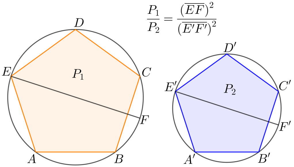 Proposición. Los polígonos semejantes inscritos en círculos son uno a otro como los cuadrados de los diámetros.